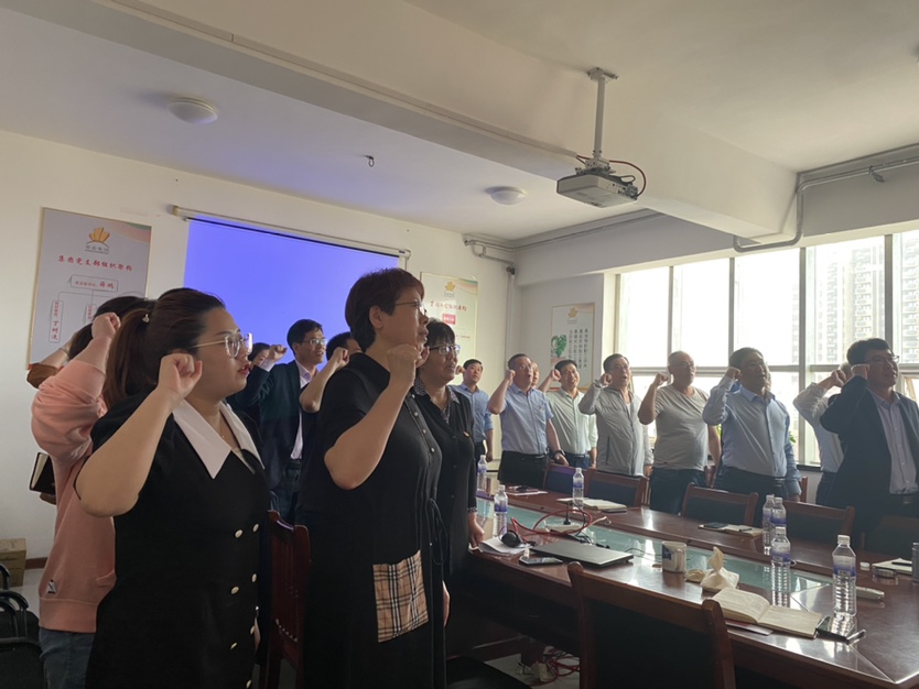 在學(xué)習(xí)之前,黨支部組織委員丁樹連同志帶領(lǐng)大家重溫入黨誓詞。