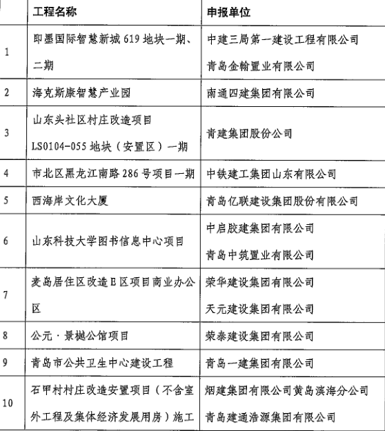 關(guān)于公布2020年度青島市智意建造科技示范工程名單的通知