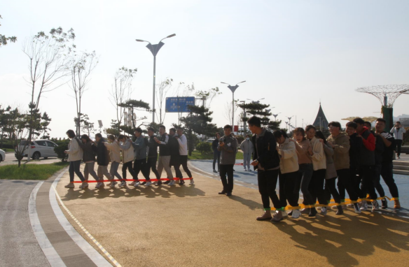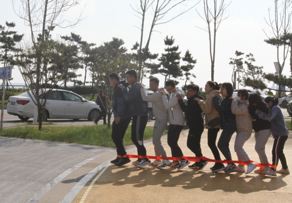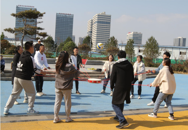 活動(dòng)在活潑歡快的音樂中拉開了序幕,“摸石過橋”“不倒森林”“同心擊鼓”“巨人腳步”······這些創(chuàng)意有趣的互動(dòng)環(huán)節(jié),迅速打破了青年員工的隔閡,搭建起互相認(rèn)識(shí)、溝通的橋梁。