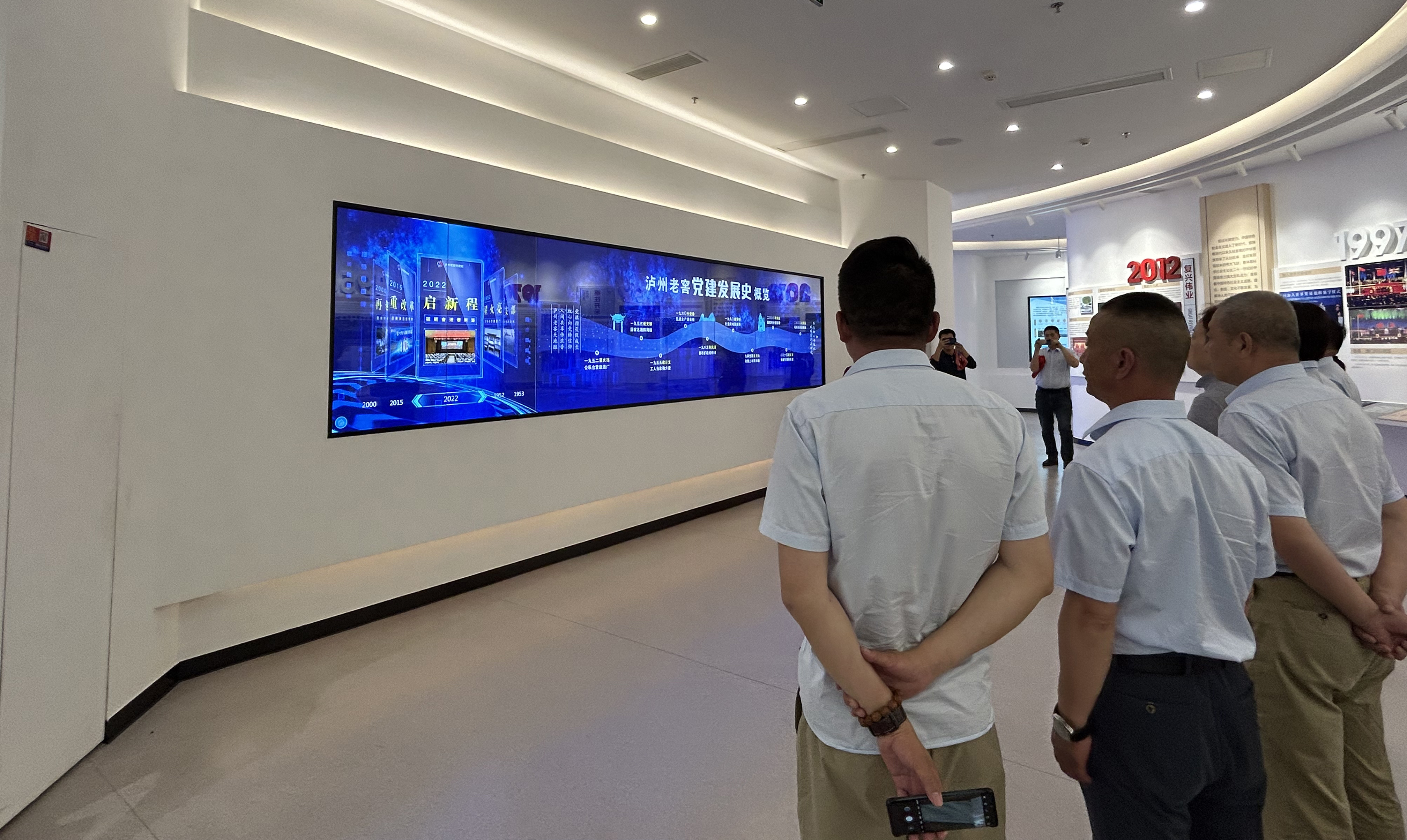 學(xué)習(xí)小組第一站參觀了瀘州老窖黨群服務(wù)中心,系統(tǒng)了解了企業(yè)的黨建歷史、企業(yè)文化、智慧黨建系統(tǒng)等情況。展廳內(nèi)黨建與科技相結(jié)合的數(shù)字化展陳方式、多功能的區(qū)域設(shè)置,生動(dòng)地展現(xiàn)了極具現(xiàn)代感的黨建工作,讓大家感到耳目一新。