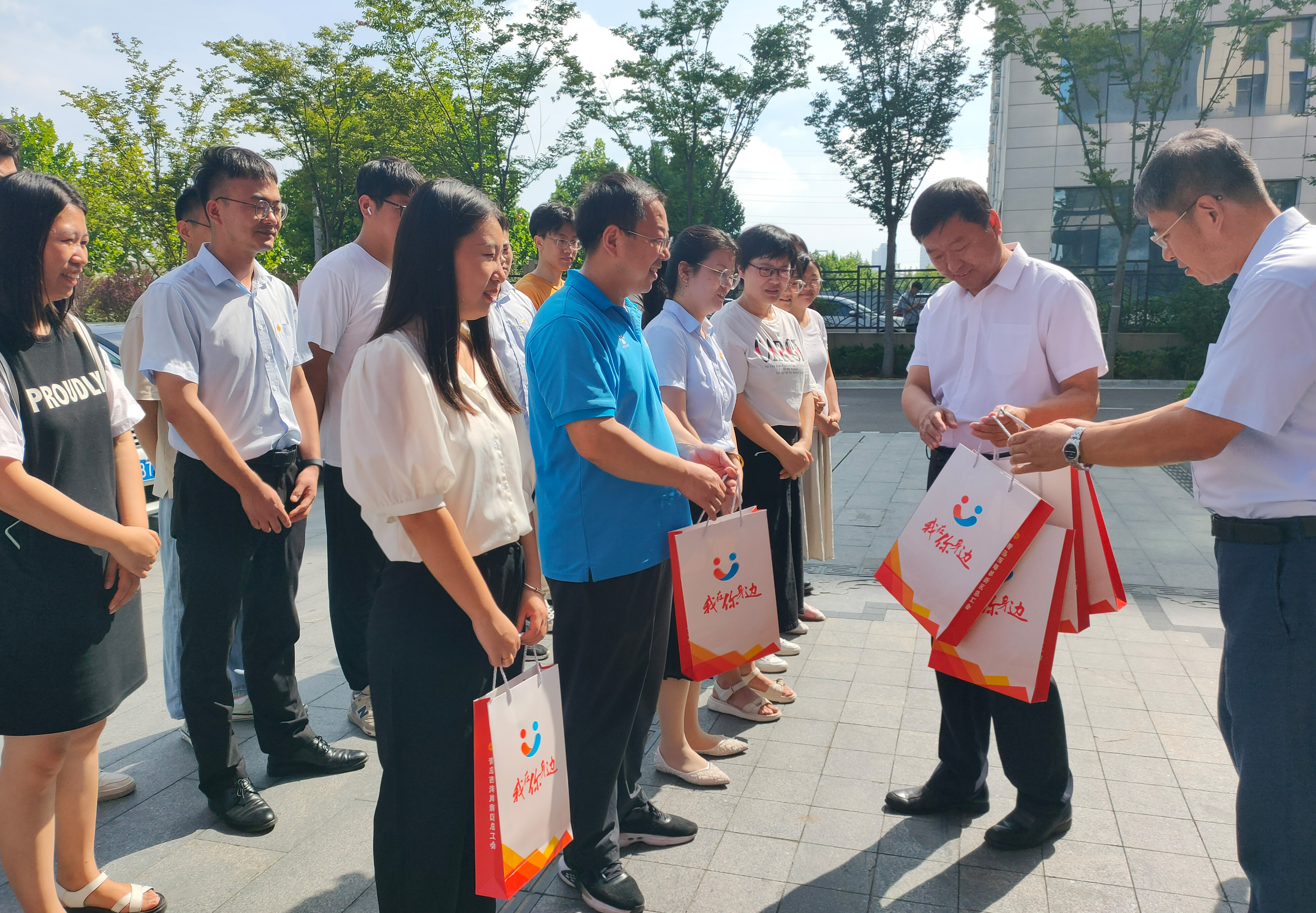 8月2日,西海岸新區(qū)總工會主席唐恩志、副主席王憲臣、基層部主任丁傳凱一行來榮泰集團(tuán)開展“夏日送清涼”活動,為奮戰(zhàn)在一線的廣大職工送去礦泉水、毛巾、飲料、沐浴露、花露水等防暑降溫物資,將政府的關(guān)懷和企業(yè)的愛心傳遞給員工,讓清涼之意拂過每一位項目建設(shè)者的心頭。