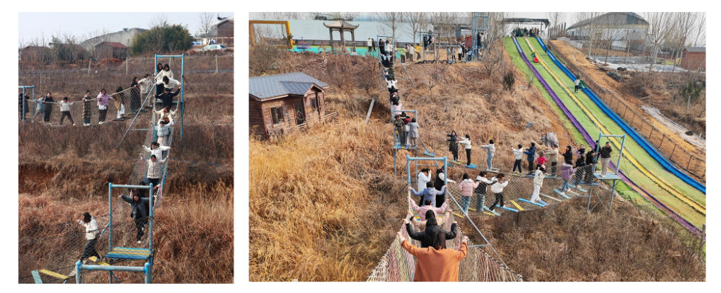 在專業(yè)教練指導(dǎo)下,女員工們化身“叢林女俠”,在索道、獨(dú)木橋等關(guān)卡中,互相鼓勵(lì),勇敢突破自我,展現(xiàn)了女性堅(jiān)韌不拔的精神風(fēng)貌。